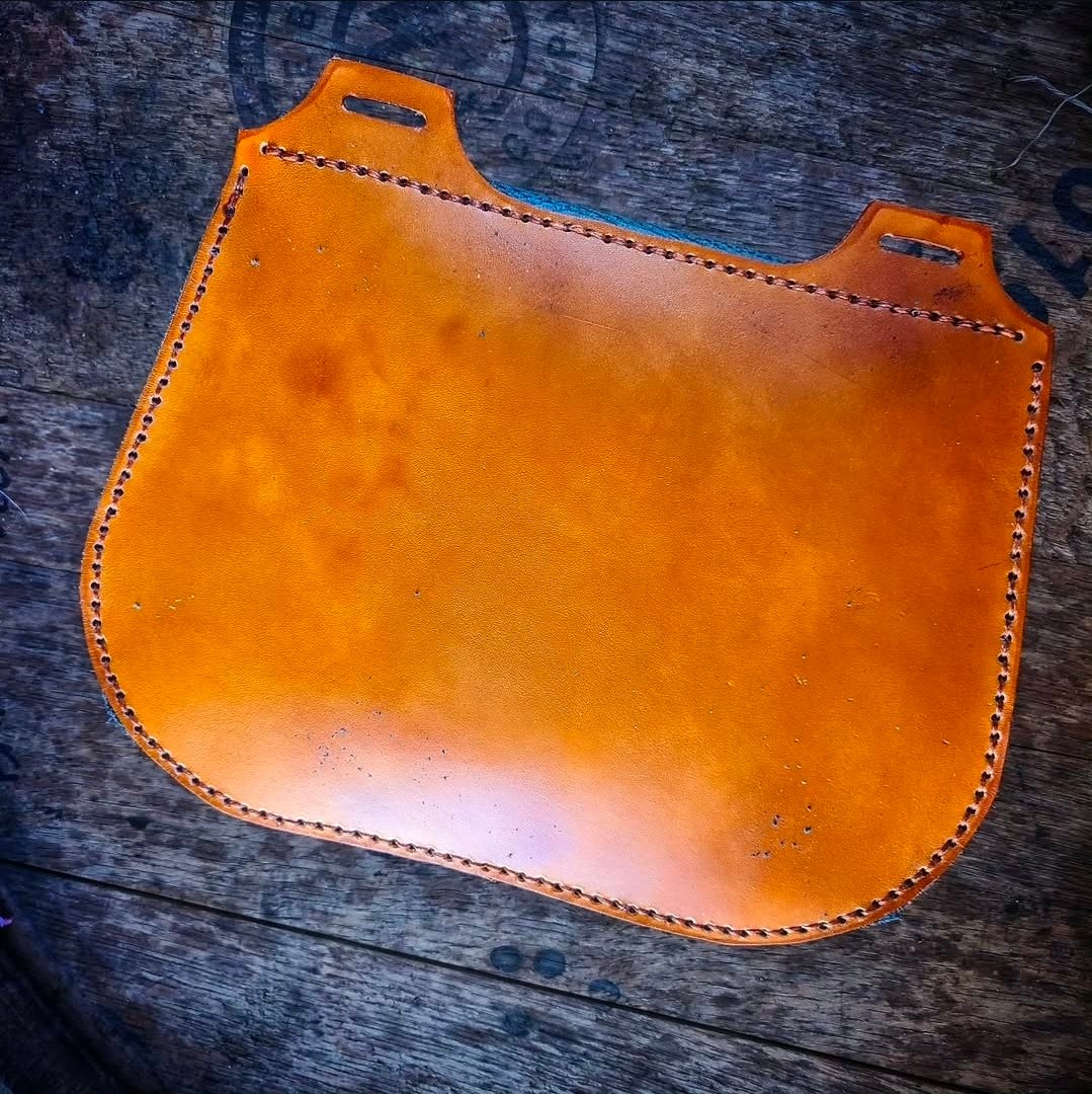 This handmade purse is made with a textured green chrome tanned leather and veg tanned back. This is a unique bag that wil hold up well. Brown leather strap is included just not pictured.
