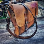 Handmade soft leather tote style bag. This bag is made using soft chrome tanned leather. Bag is very spacious with a top handle and shoulder strap. Dyed number code on flap for a military style look.
